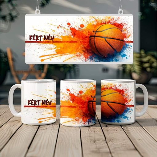 Zsákolj a neveddel ezzel az egyedi kosárlabdás bögrével, amelyen a “KÉRT NÉV” helyére a te általad megadott név kerül! A bögre dinamikus narancs, vörös és kék fröccsenés grafikájával a játék szenvedélyét tükrözi, így tökéletes társ a kávézásokhoz vagy a meccsek nézéséhez. Remek ajándék születésnapra vagy bármilyen alkalomra, amivel egy kis sportos hangulatot csempészhetsz a napodba!