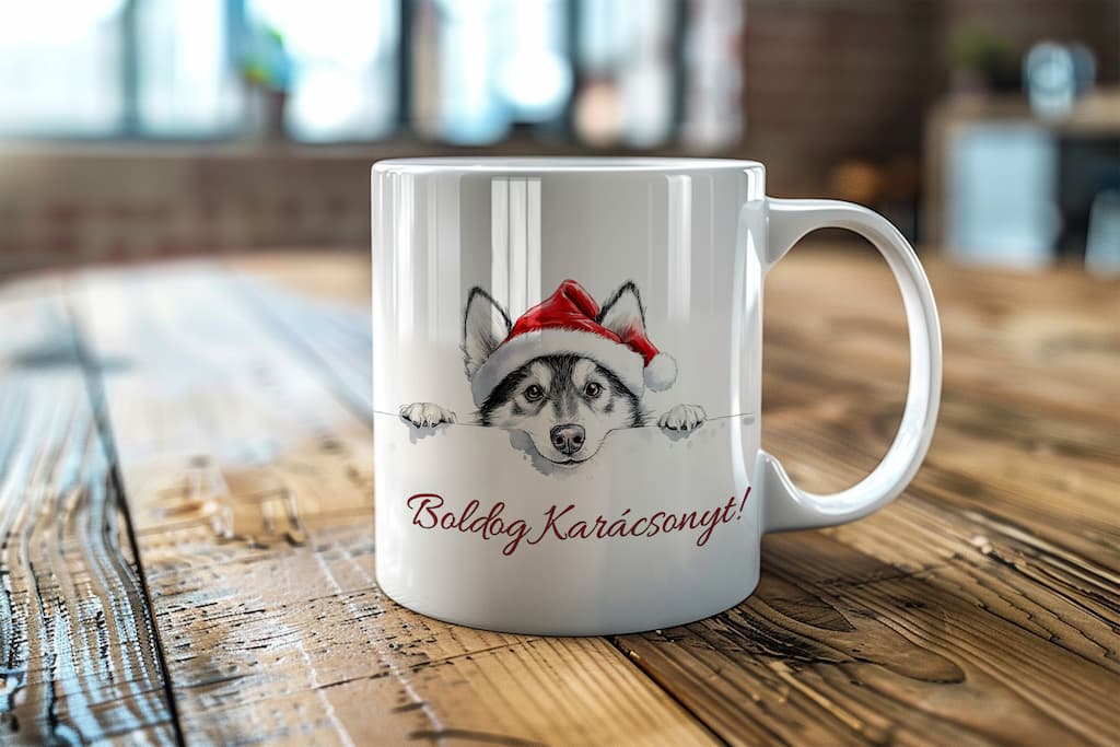 Husky kutyás karácsonyi bögre. Névnapra , születésnapi ajándéknak is tökéletes termék.