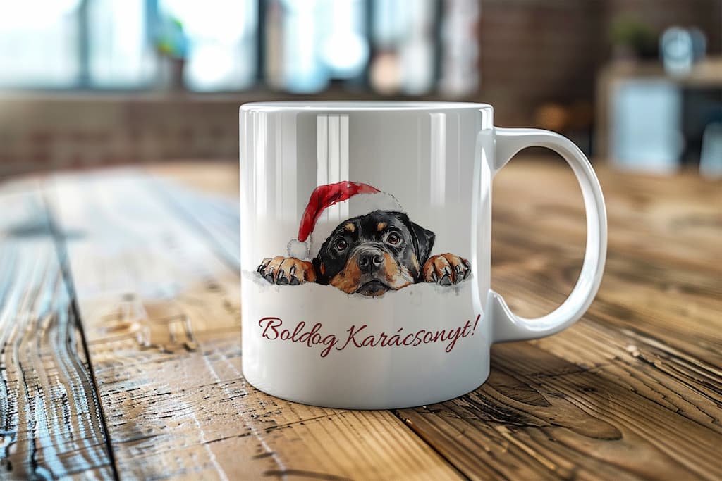 Rottweiler kutyás karácsonyi bögre. Névnapra , születésnapi ajándéknak is tökéletes termék.