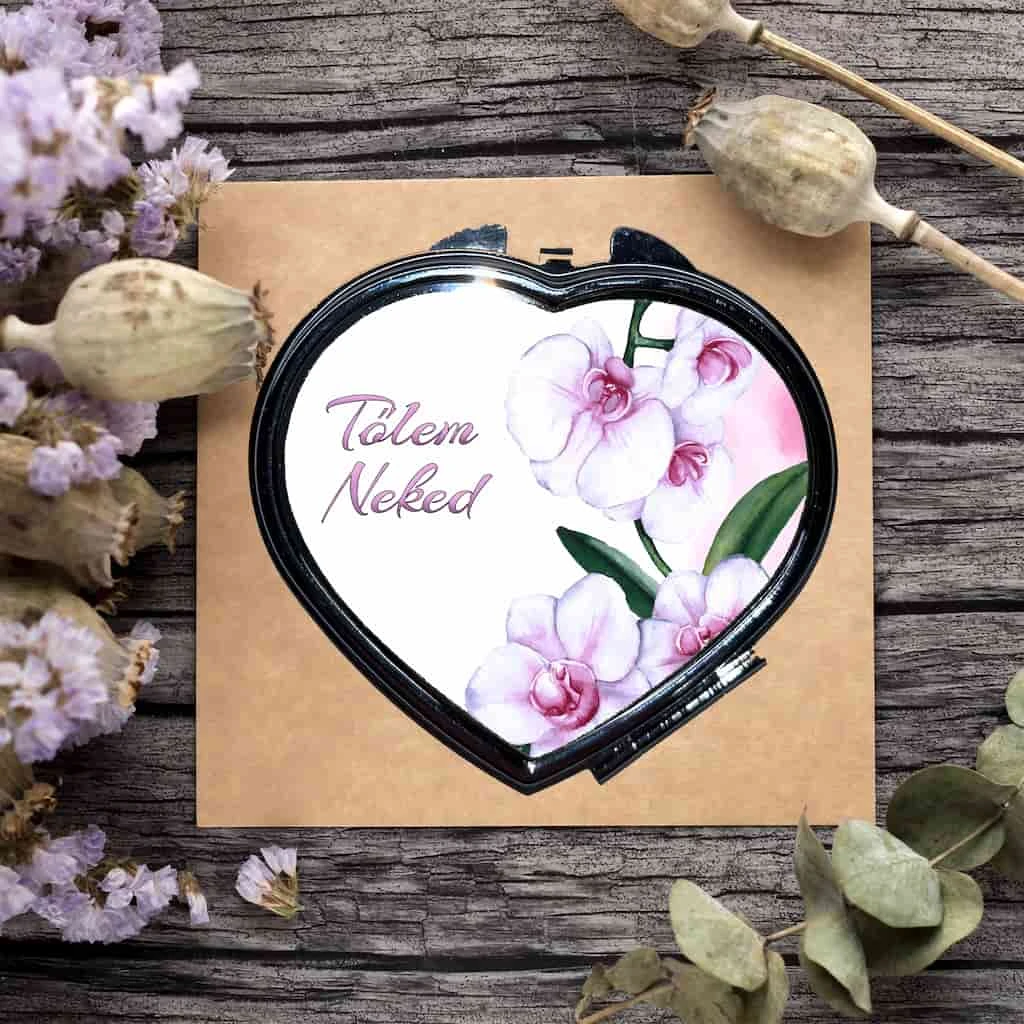 Fedezd fel ezt a gyönyörű sminktükröt, amelyen egy elegáns orchidea díszeleg, és amely tökéletes ajándék minden nő számára! A tükör kétoldalas, így könnyedén elkészítheted a sminkedet bármilyen alkalomra. Ráadásul kérheted a saját vagy szeretteid nevét, hogy még személyesebb legyen!