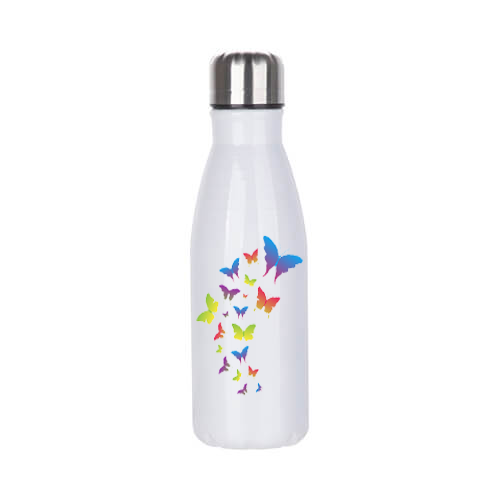 Ez a szerkeszthető fehér kulacs 6,5 dl űrtartalommal ideális társ a mindennapi hidratáláshoz. Alumíniumból készült, könnyen egyedivé alakítható a saját stílusod szerint. Kézi mosogatás ajánlott, és ne tedd mikrohullámú sütőbe!