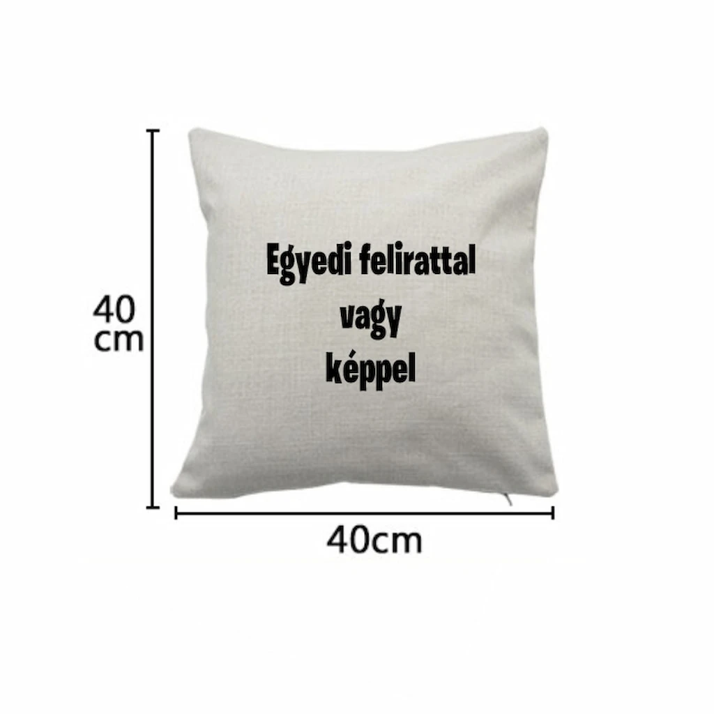 A díszpárna huzat 40*40 cm-es párnára való, és egyedi fényképet szöveget, vagy bármilyen feliratot kérhetsz rá.